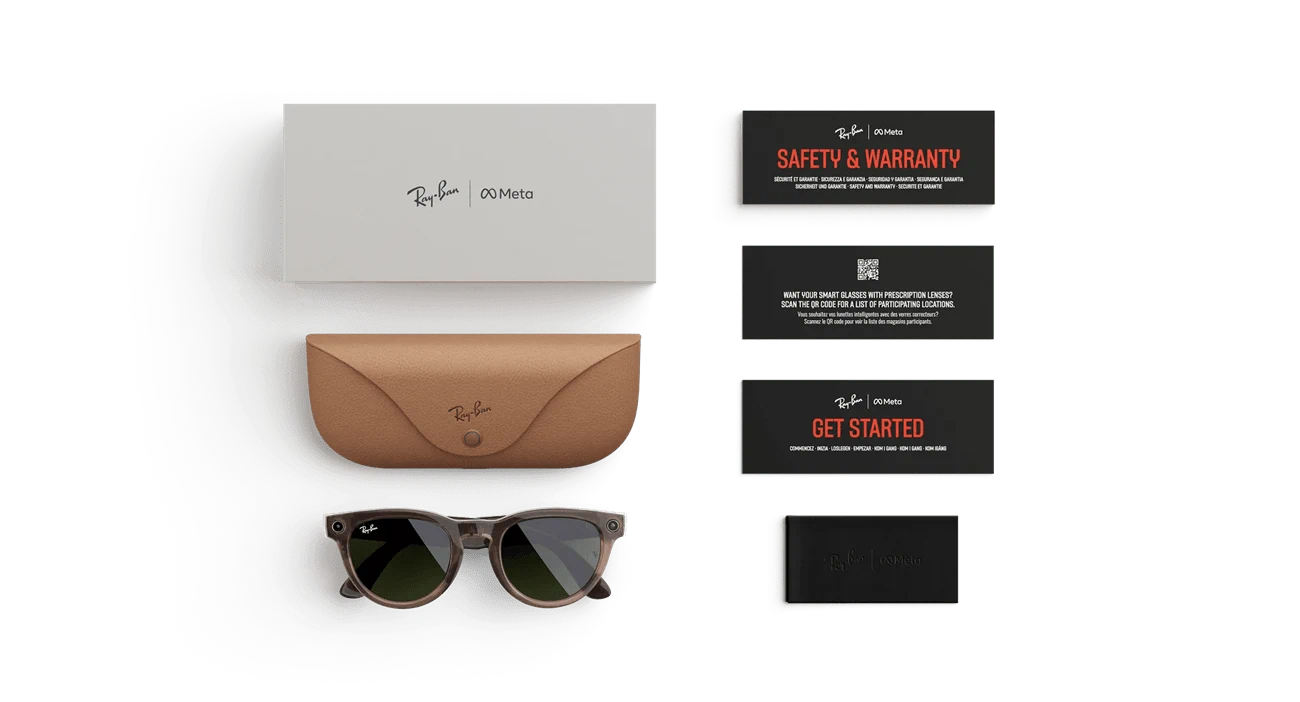 משקפי Ray-Ban Meta Headliner – צבע Warm Stone עם עדשות Transitions® + רצועת EMG Mudra חכמה