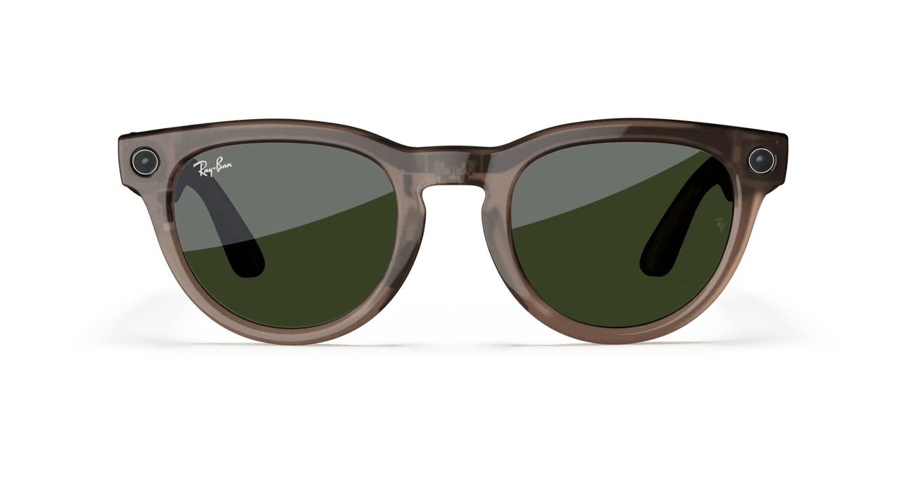 🕶️ Ray-Ban Meta Headliner Shiny Warm Stone Transparent – עם עדשות Tint to Dark Green Transitions® | קלות, חכמות, בצבע שנכנס ללב
